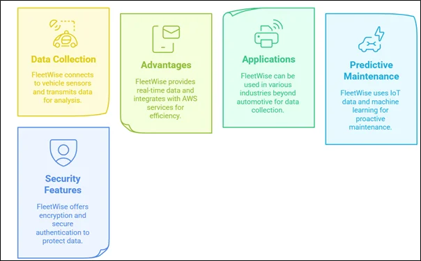- Seamless Integration with AWS Services: AWS FleetWise integrates with AWS IoT Core, Amazon S3, AWS Lambda, and Amazon Kinesis for scalable data processing.