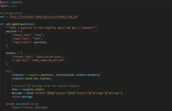 Here’s a practical example of how to interact with a Langflow flow through its API: