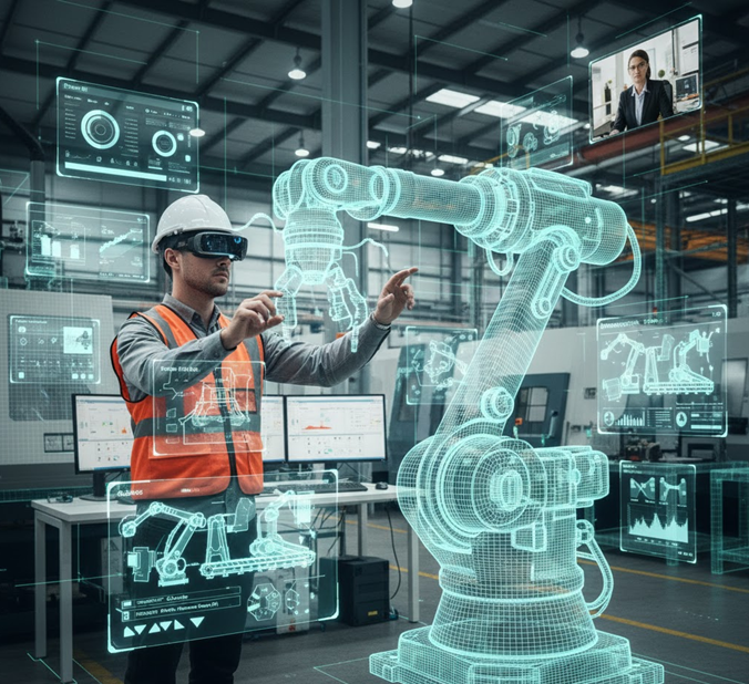 Caption: Using Microsoft HoloLens for remote assistance and real-time guidance in industrial environments.